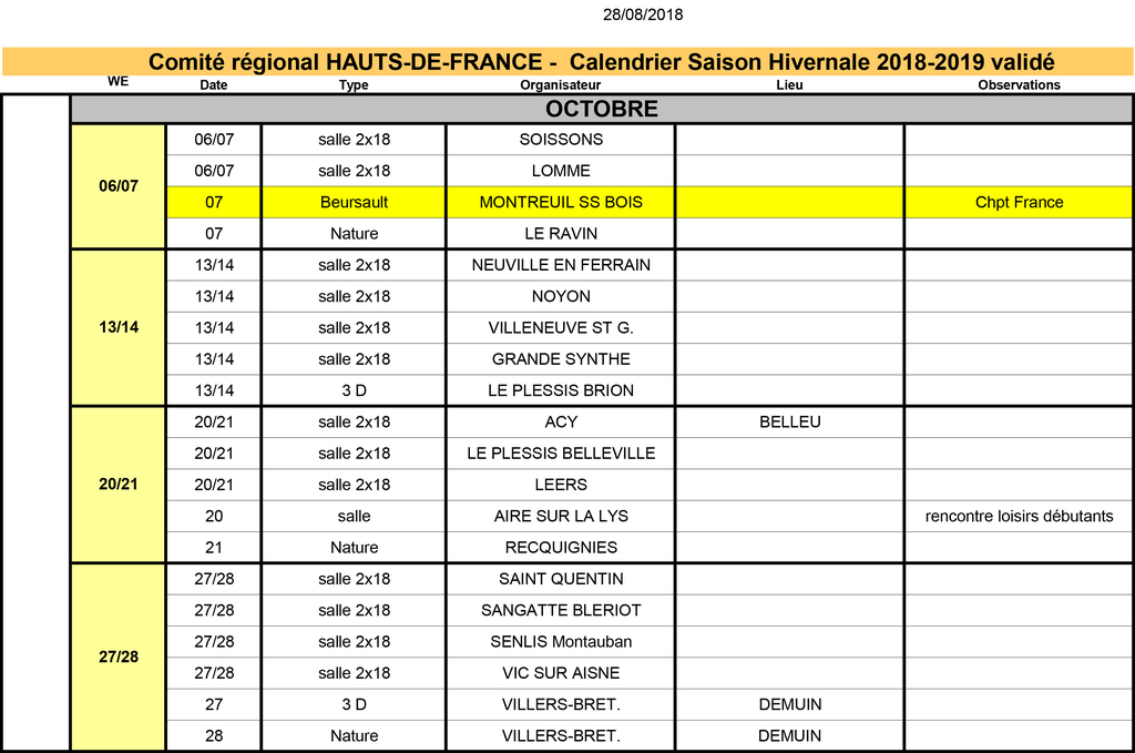 Classement fédéral 2018