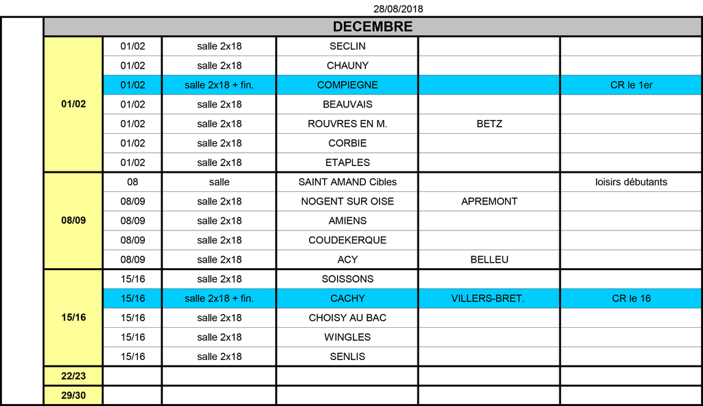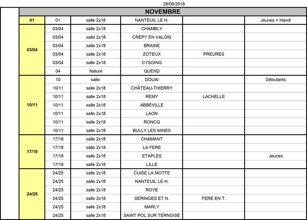 Classements salle dépt et nat